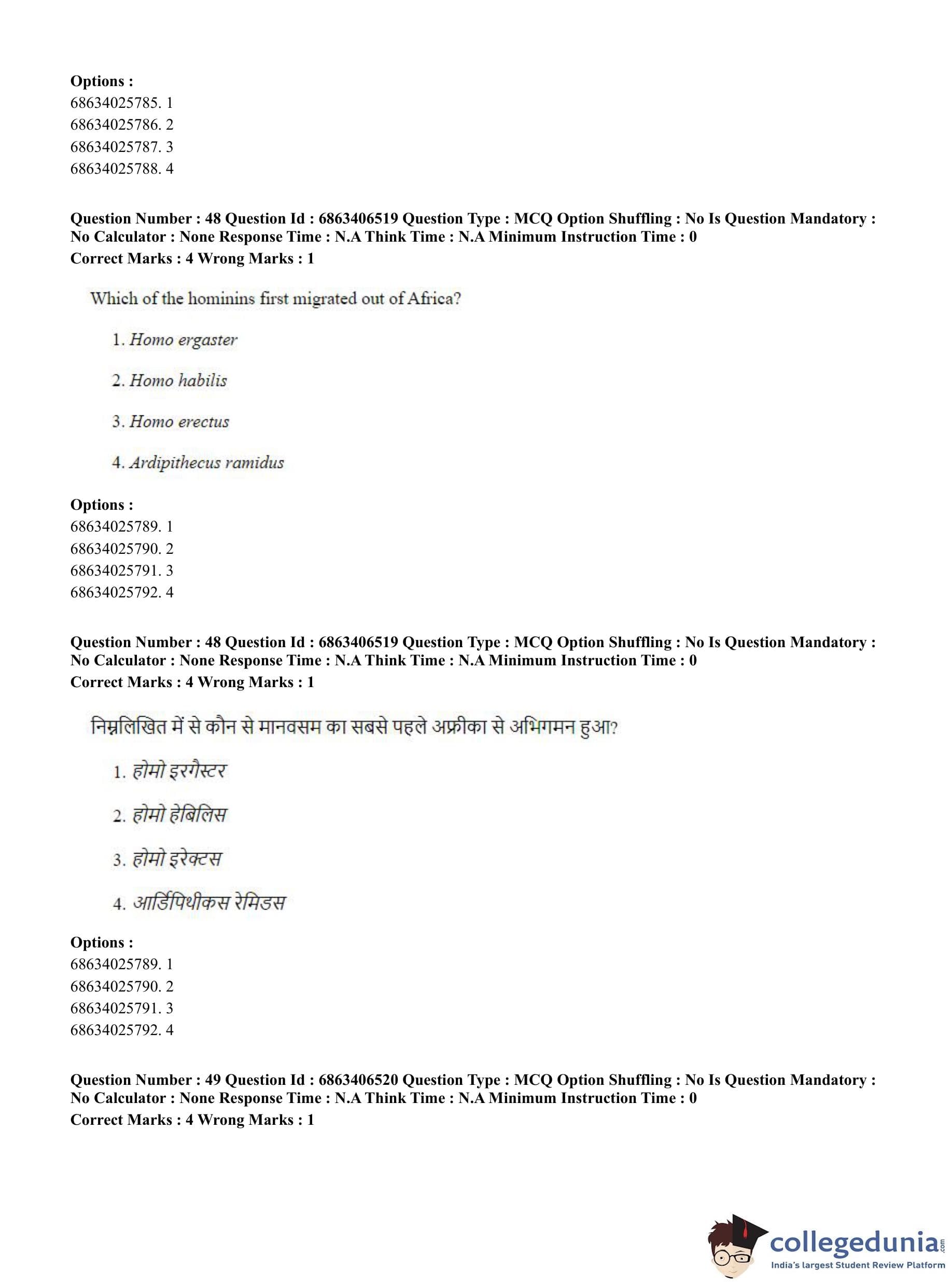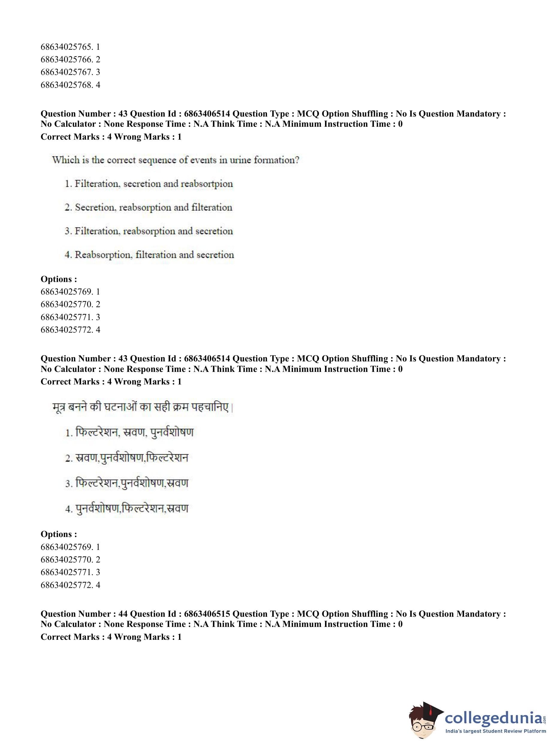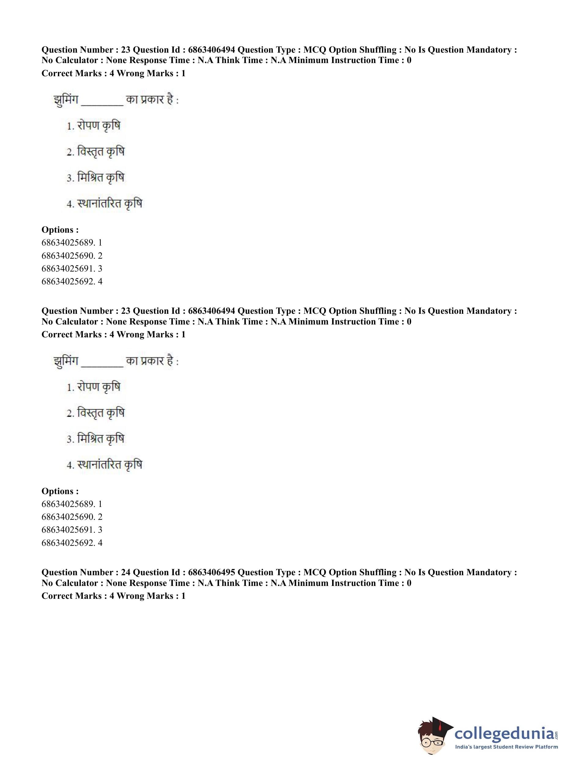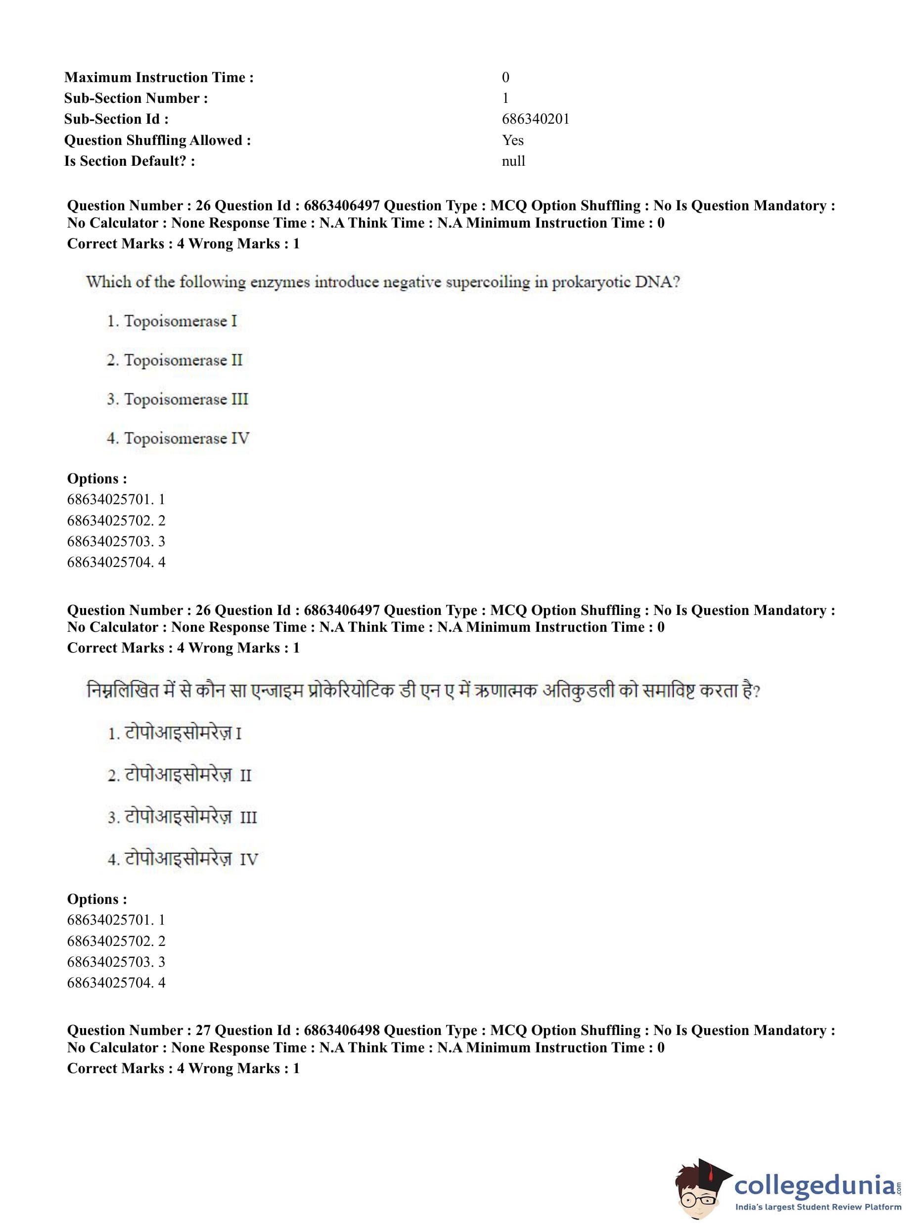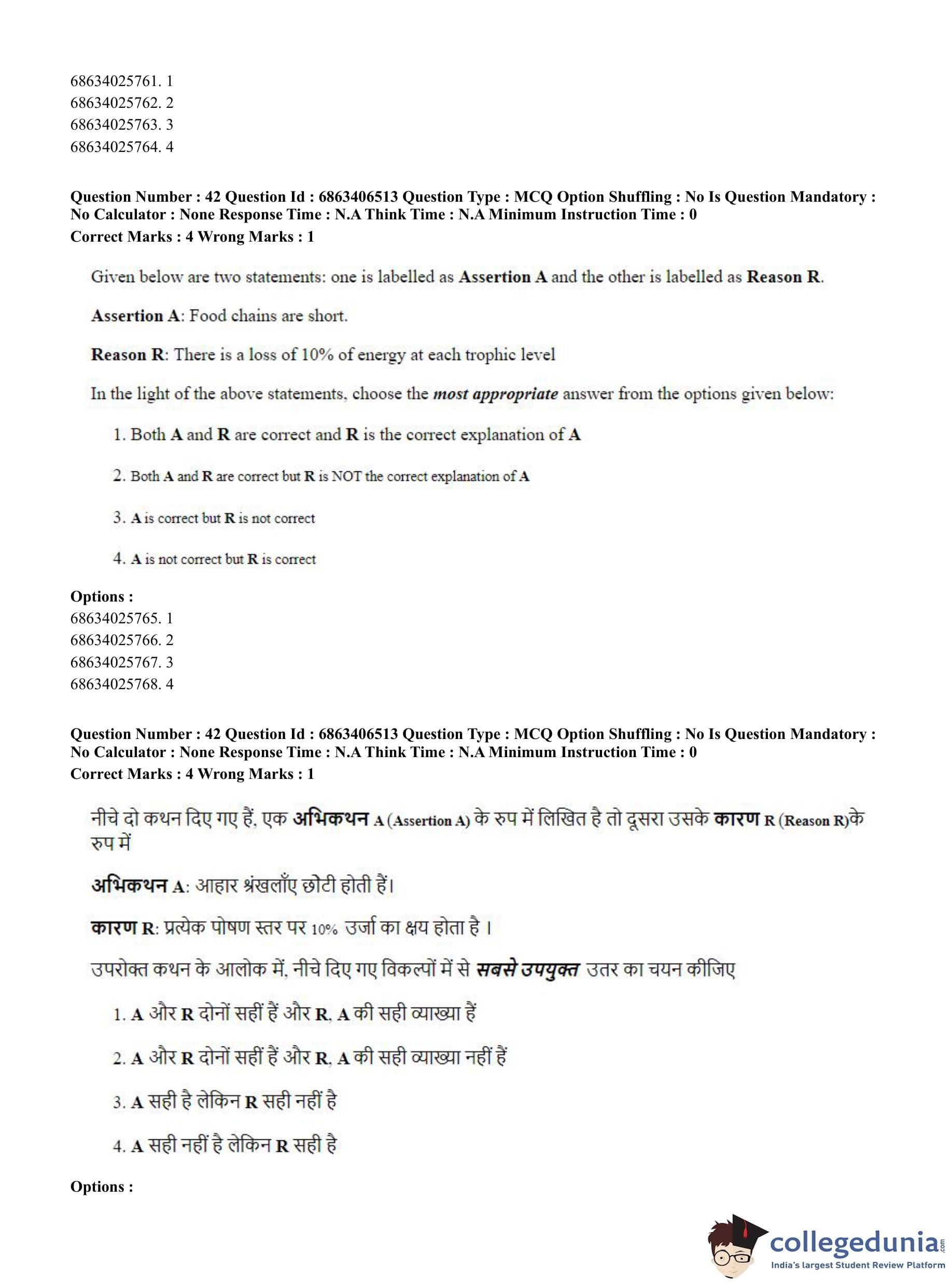 CUET PG 2023 Zoology Question Paper in Hindi (June 5 - Shift 3)