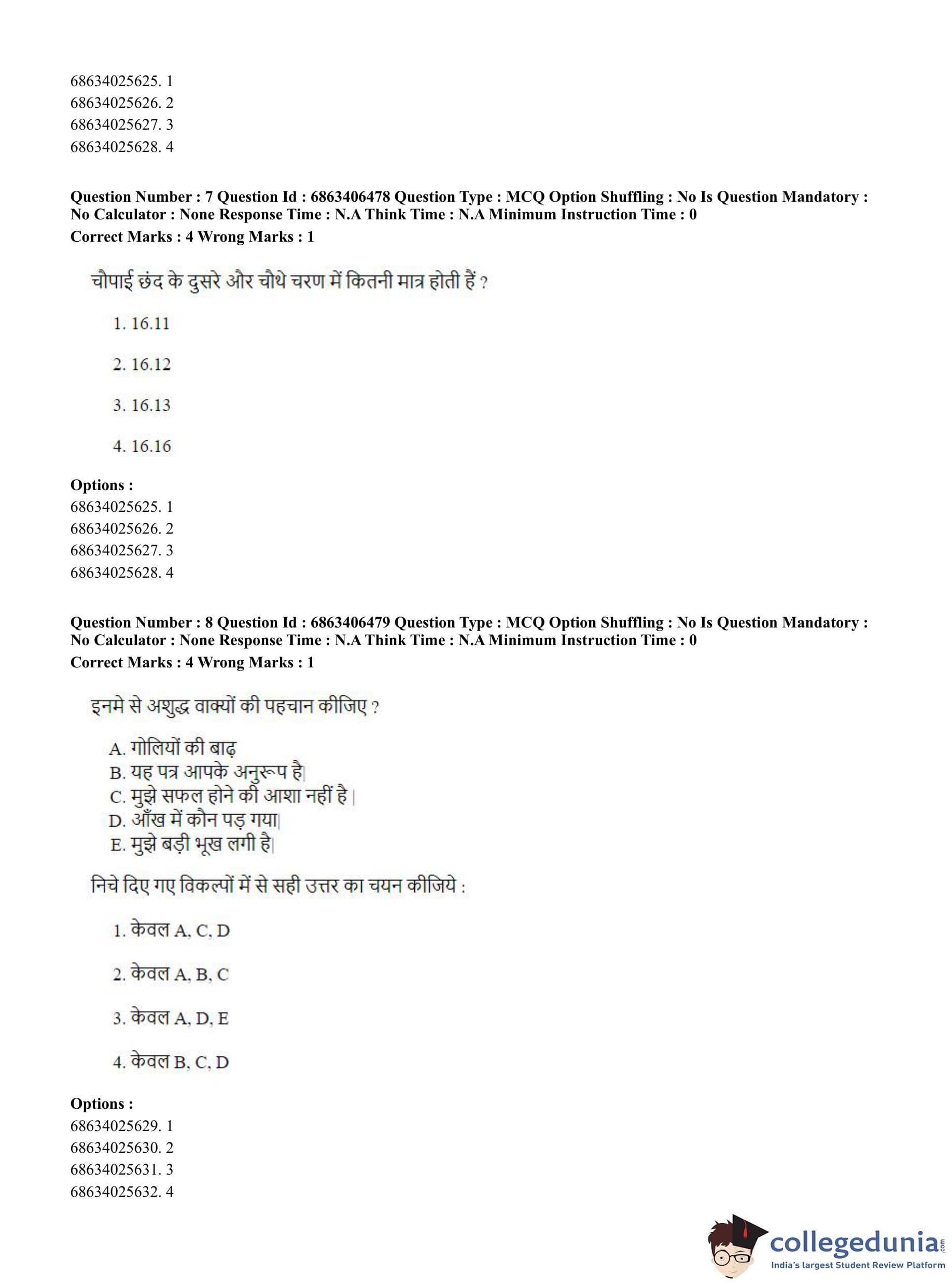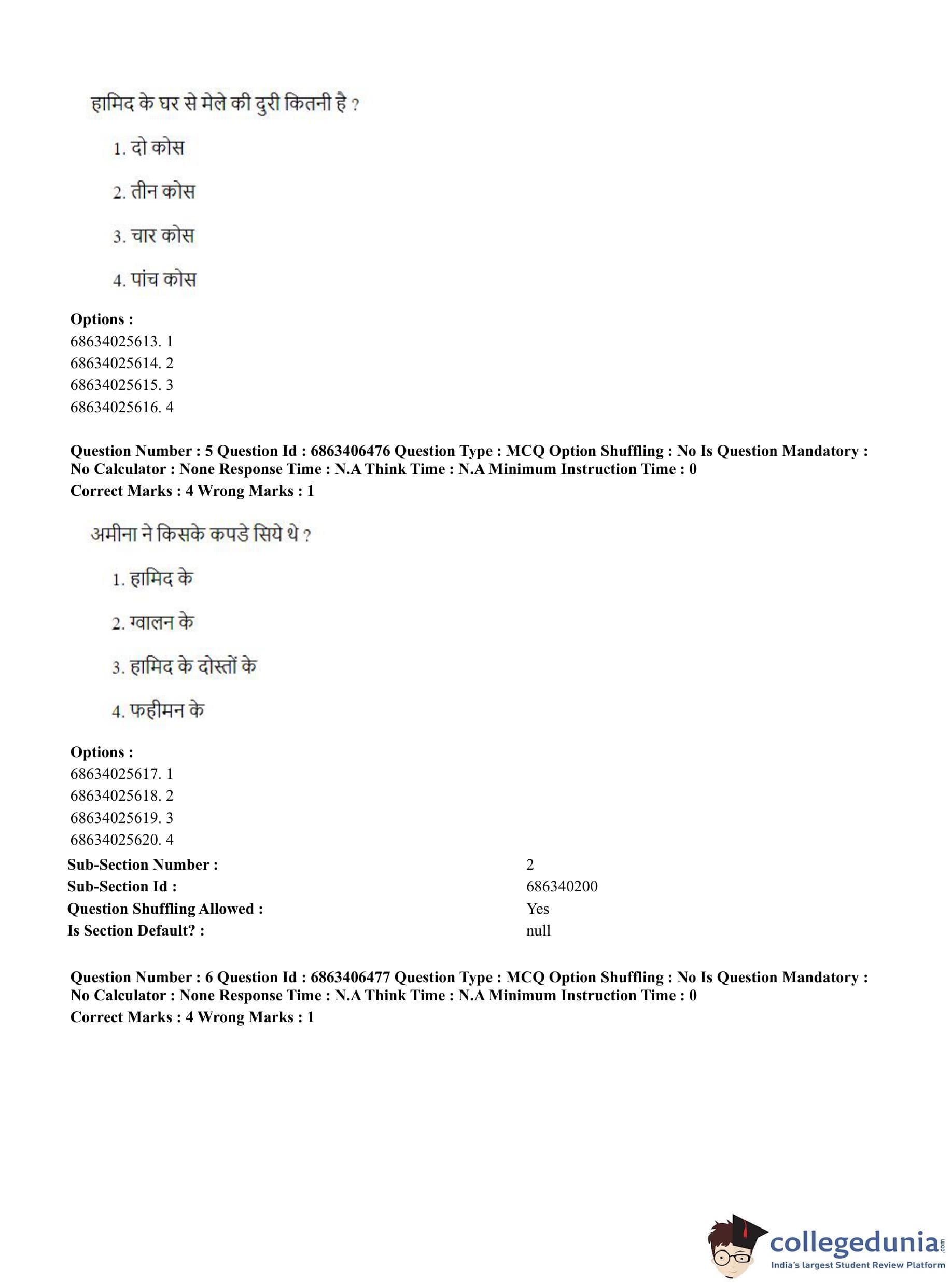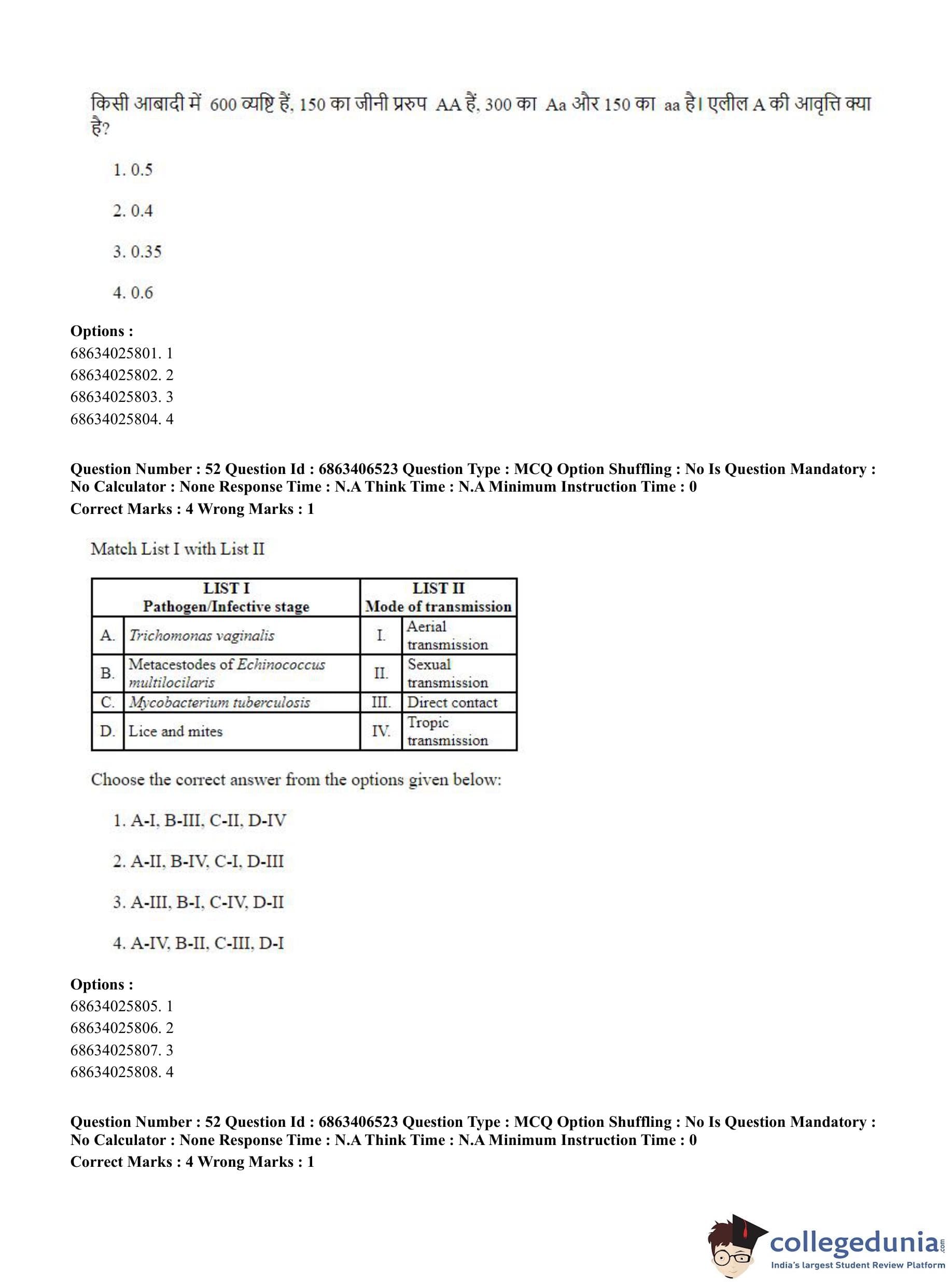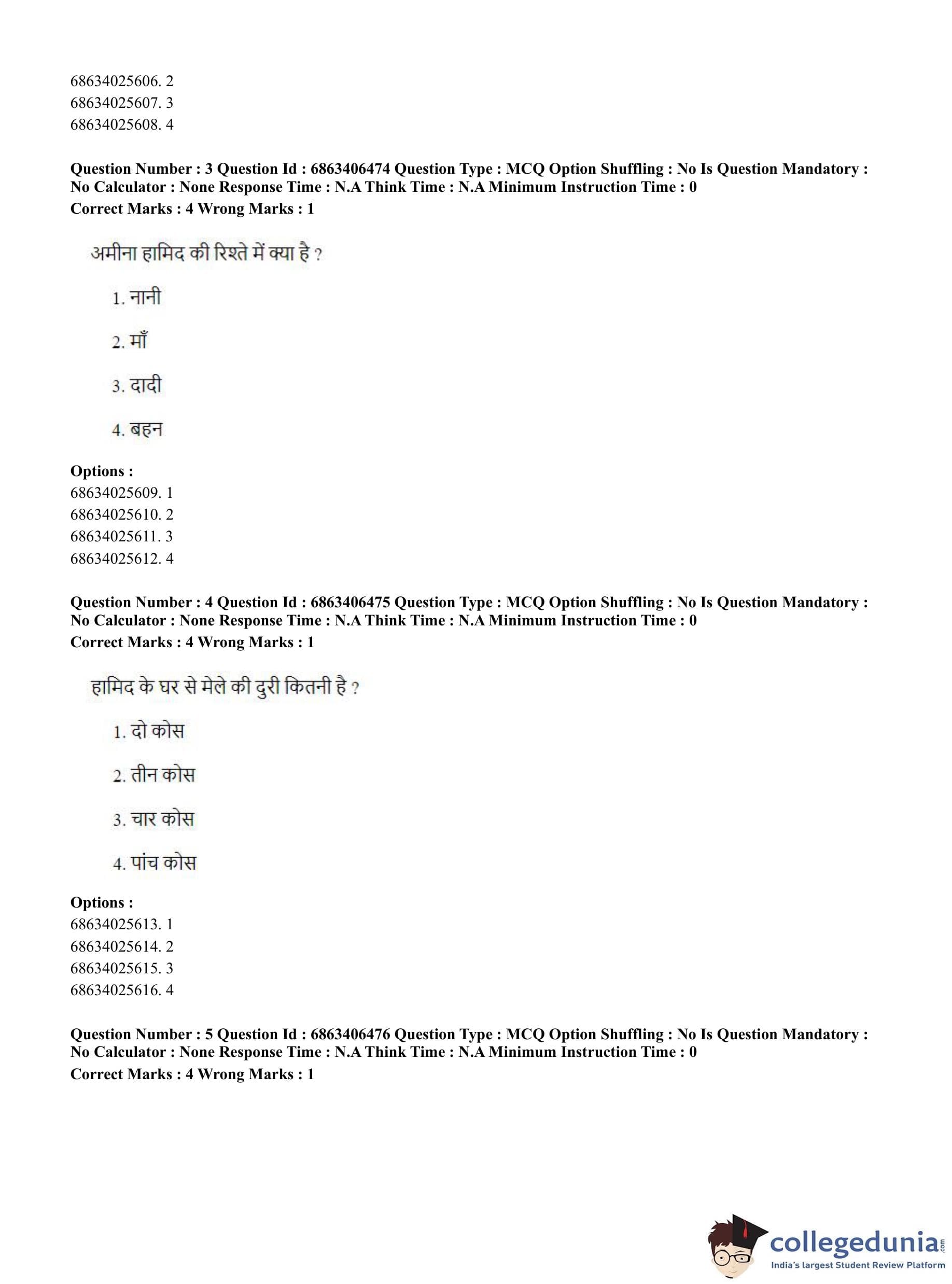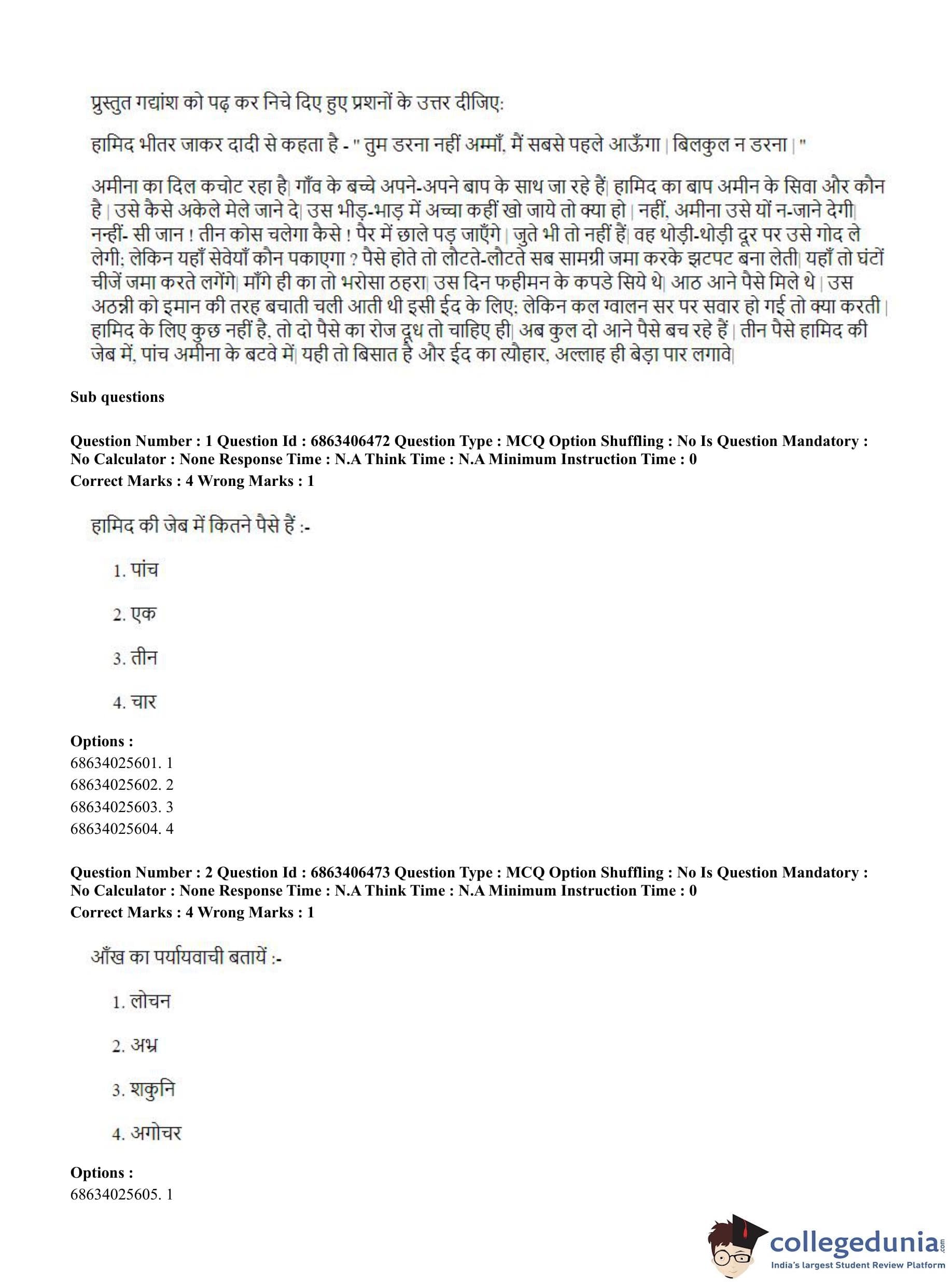 CUET PG 2023 Zoology Question Paper in Hindi (June 5 - Shift 3)