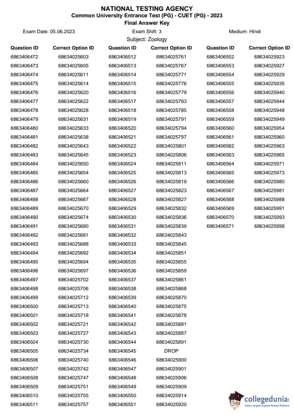 | CUET PG Zoology Question Paper 2023 PDF | CUET PG Zoology Answer Key 2023 PDF |