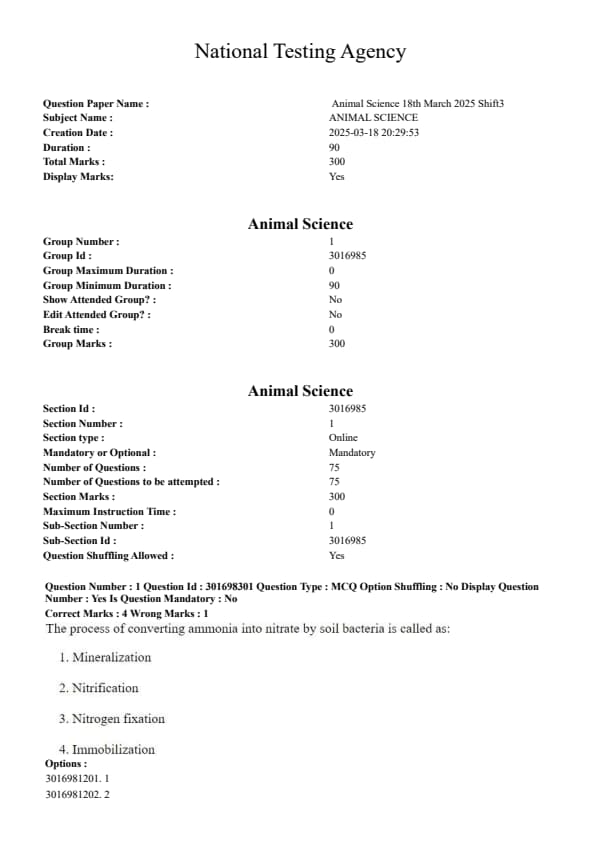 CUET PG Animal Science 2025 Question Paper with Answer Key PDF