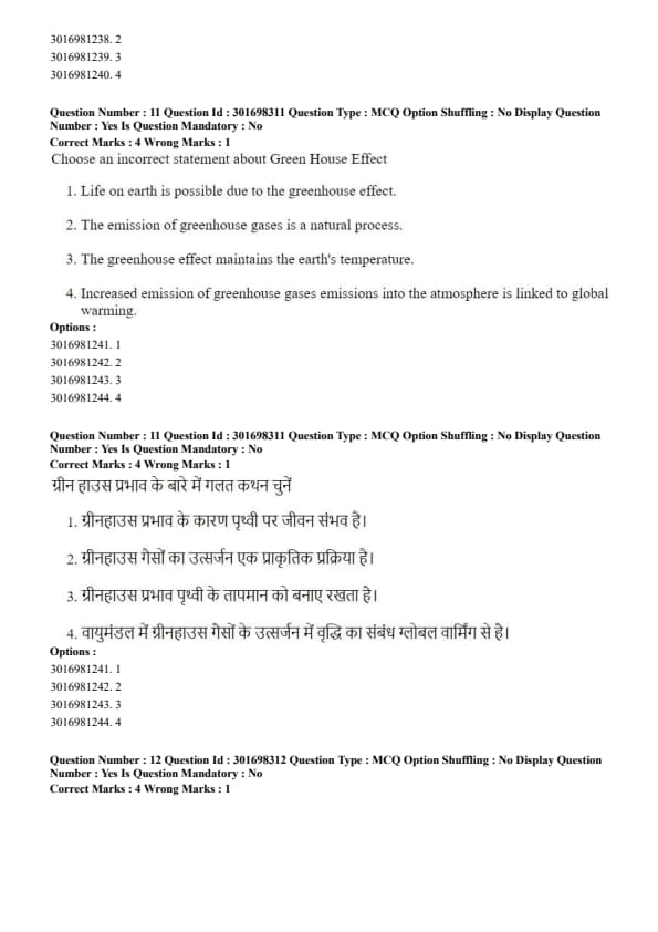 - (D) Increased emission of greenhouse gases emissions into the atmosphere is linked to global warming.