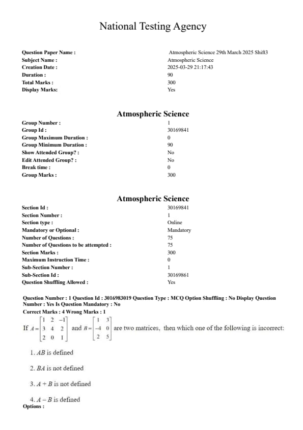 | CUET PG Atmospheric Science Question Paper with Solutions PDF | Download PDF | Check Solutions |