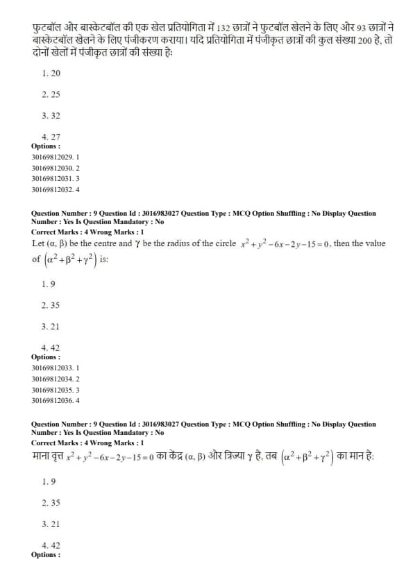 Let \((\alpha, \beta)\) be the centre and \(\gamma\) be the radius of the circle \(x^2+y^2-6x-2y-15=0\), then the value of \((\alpha^2+\beta^2+\gamma^2)\) is: