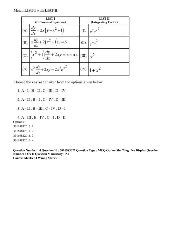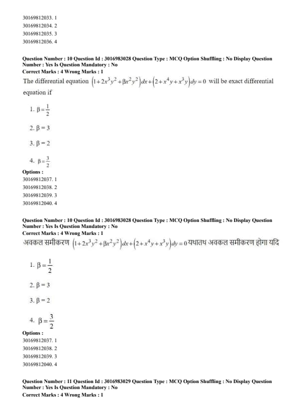 The differential equation \( (1+3x^2y^2+\beta x^2y^4)dx + (2x^3y+2x^3y^3)dy = 0 \) will be exact differential equation if (assuming typos in original question are corrected as shown):