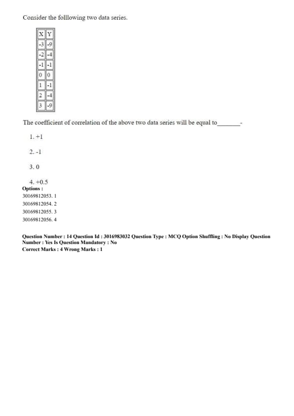 The coefficient of correlation of the above two data series will be equal to _____