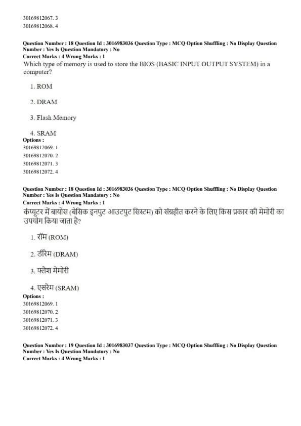 Which type of memory is used to store the BIOS (BASIC INPUT OUTPUT SYSTEM) in a computer?