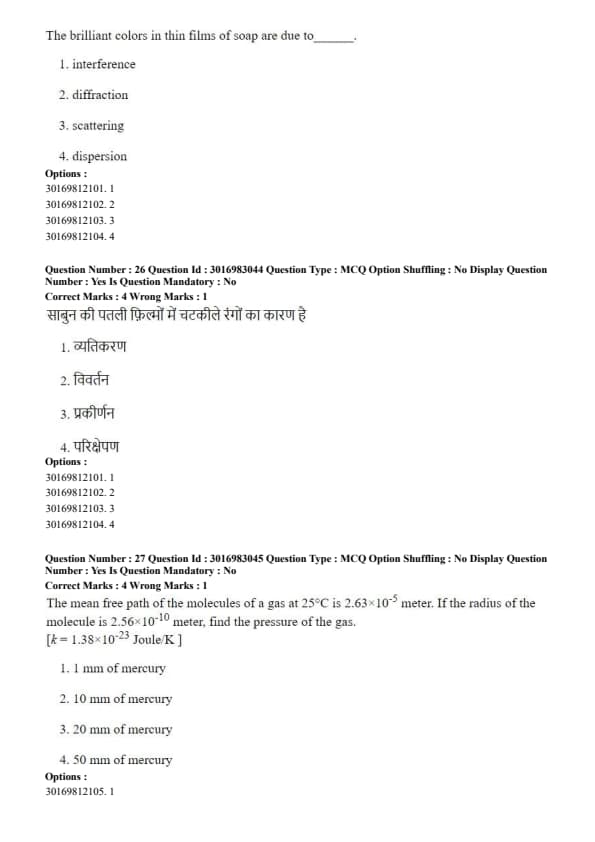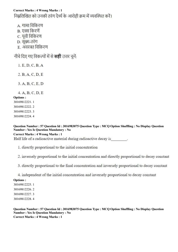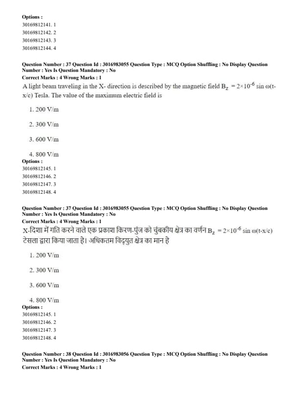 There will be 75 questions, to be solved in 60 minutes, for a total of 300 marks. Each correct answer carries 4 marks, and 1 mark is deducted for each incorrect one.