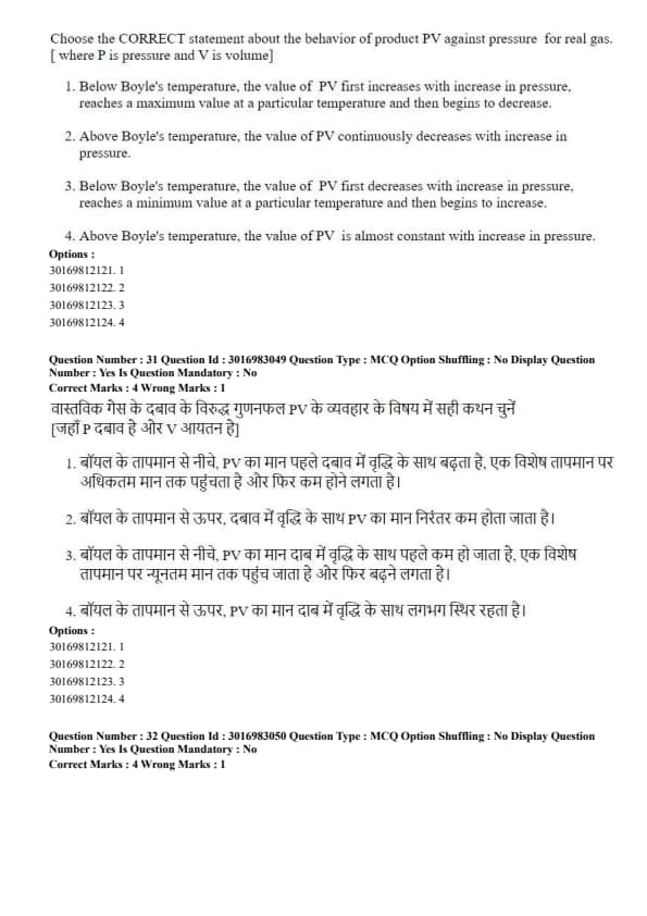 Choose the CORRECT statement about the behavior of product PV against pressure for real gas. [where P is pressure and V is volume]
