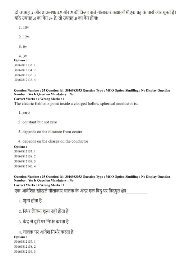 Two satellites A and B go around a planet in circular orbits having radii of 4R and R, respectively. If the velocity of satellite A is 3v, the velocity of satellite B will be: