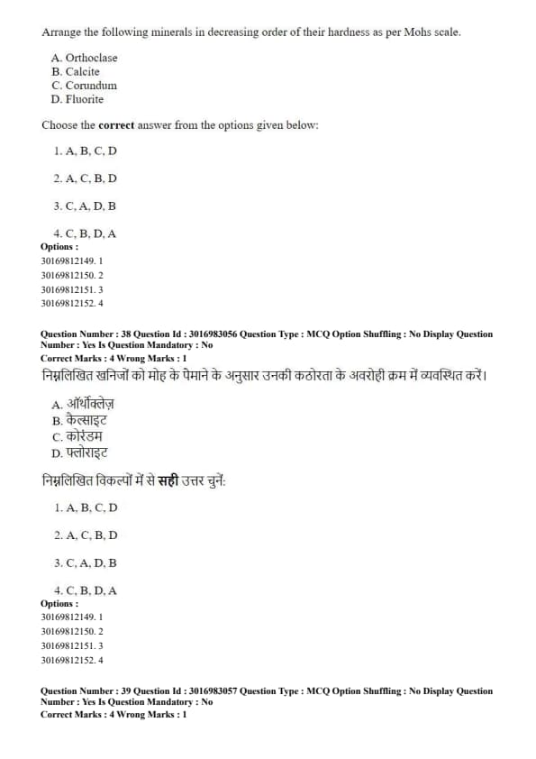 Arrange the following minerals in decreasing order of their hardness as per Mohs scale.