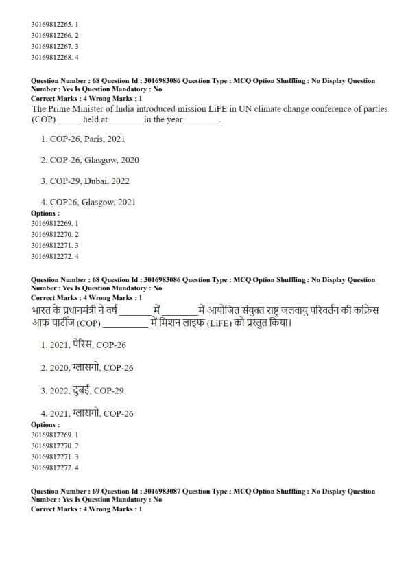 The Prime Minister of India introduced mission LiFE in UN climate change conference of parties (COP) ______ held at ______ in the year ______.