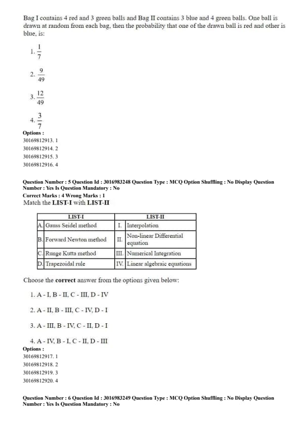 Bag I contains 4 red and 3 green balls and Bag II contains 3 blue and 4 green balls. One ball is drawn at random from each bag, then the probability that one of the drawn balls is red and the other is blue, is: