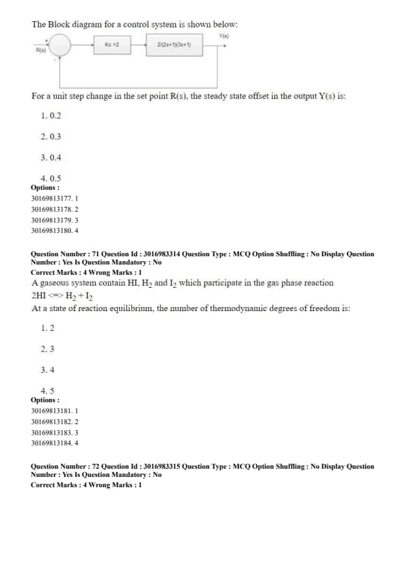 The Block diagram for a control system is shown below: