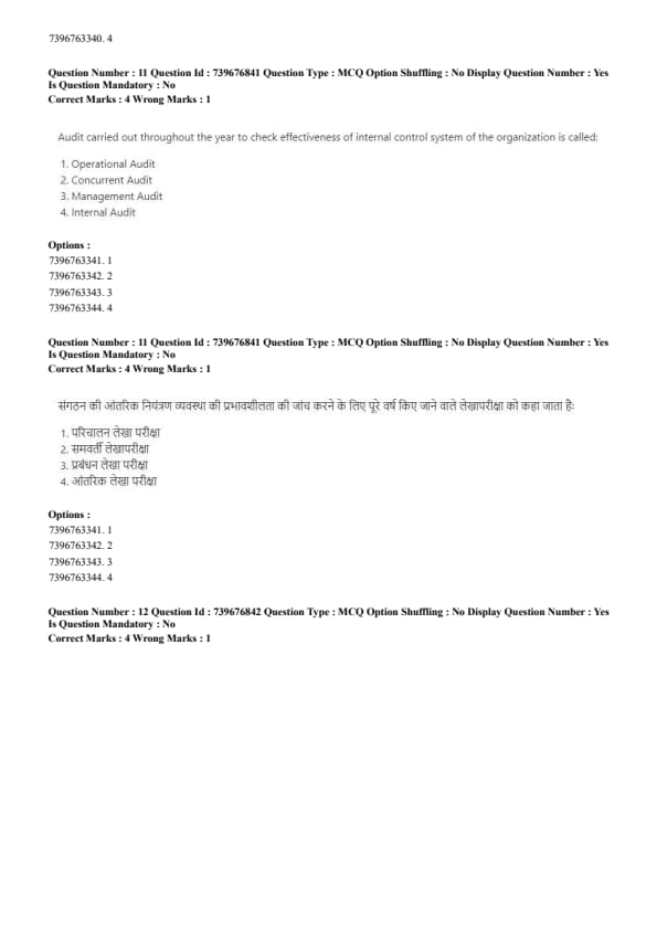 Audit carried out throughout the year to check effectiveness of internal control system of the organization is called: