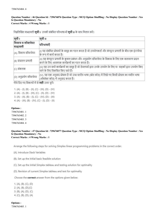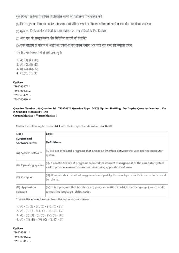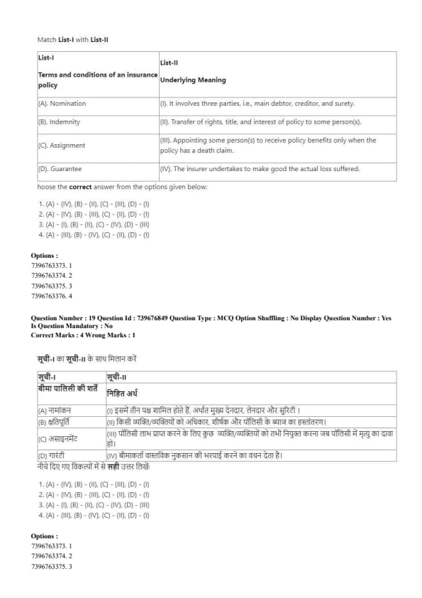 - (1) (A)-(I), (B)-(III), (C)-(II), (D)-(IV)