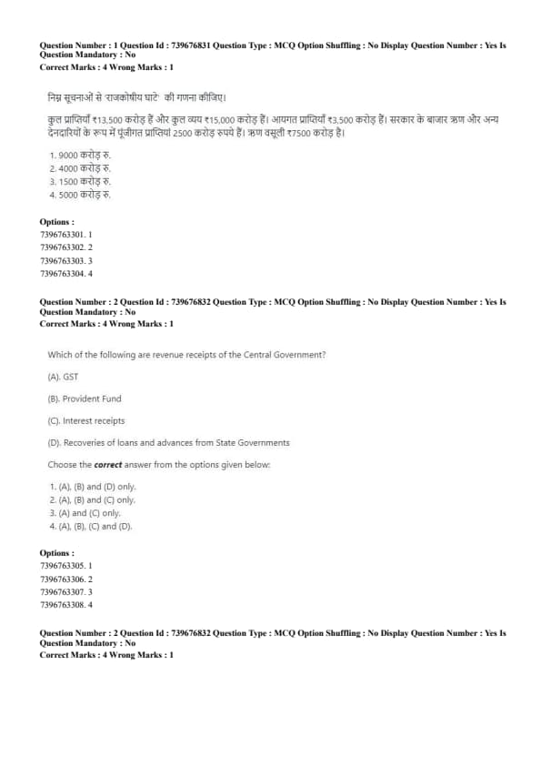 - (D) Recoveries of loans and advances from State Governments