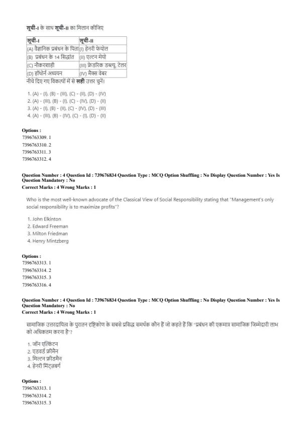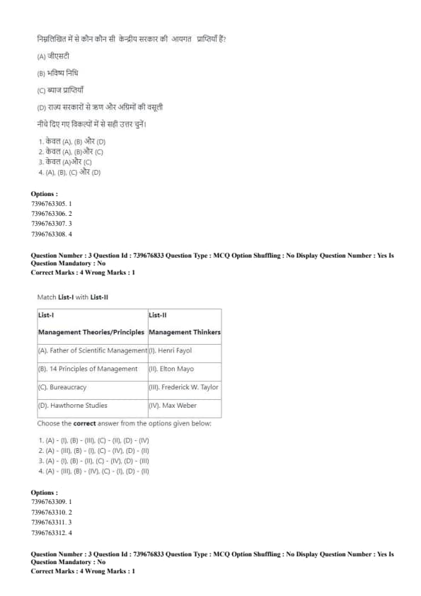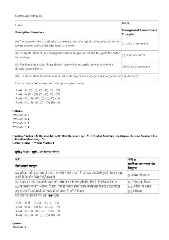 Match List-I (Management Theories/Principles) with List-II (Management Thinkers):