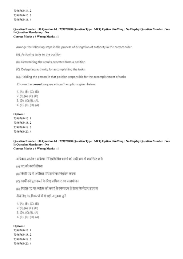 - (2) (A), (C), (D), (B)