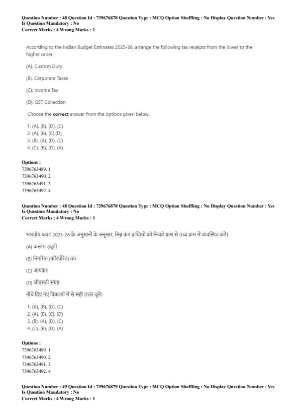 - Choose the Correct one from the options given below: