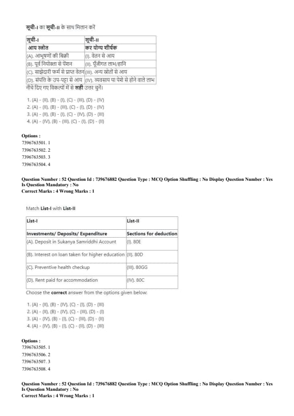 - (1) (A)-(II), (B)-(IV), (C)-(I), (D)-(III)