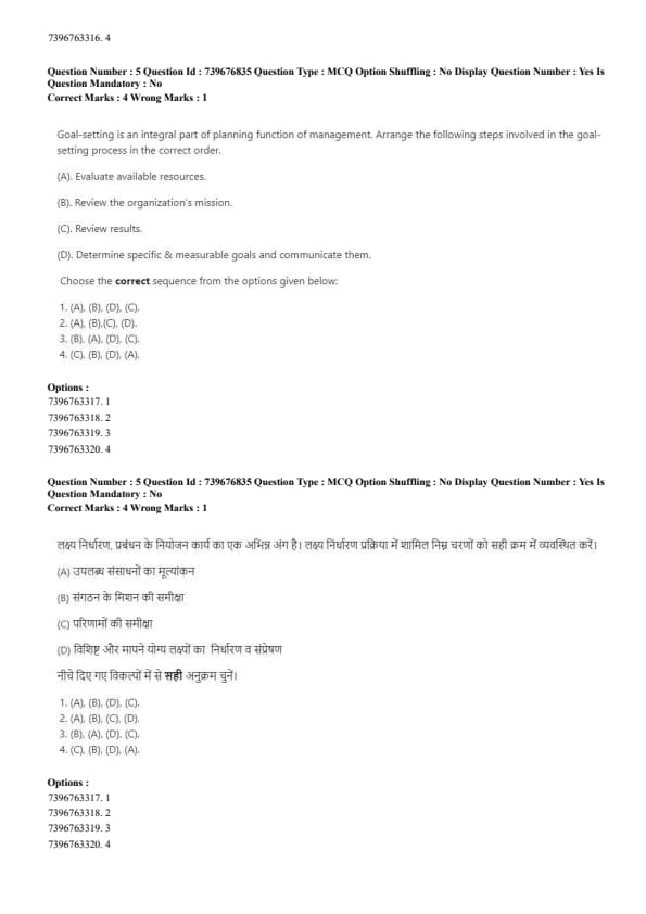 Goal-setting is an integral part of planning function of management. Arrange the following steps involved in the goal-setting process in the correct order.
