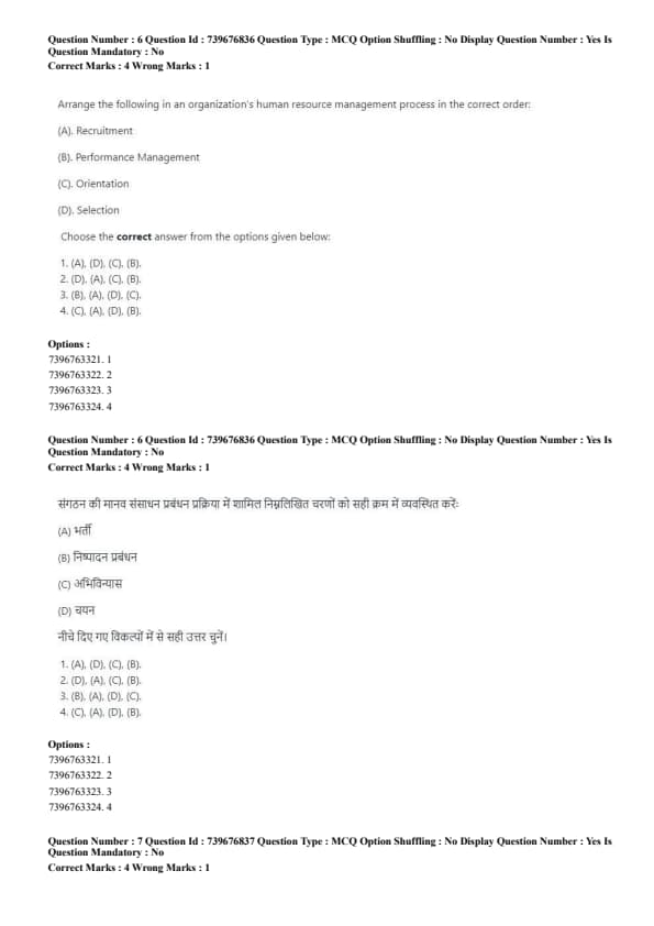 Arrange the following in an organization's human resource management process in the correct order: