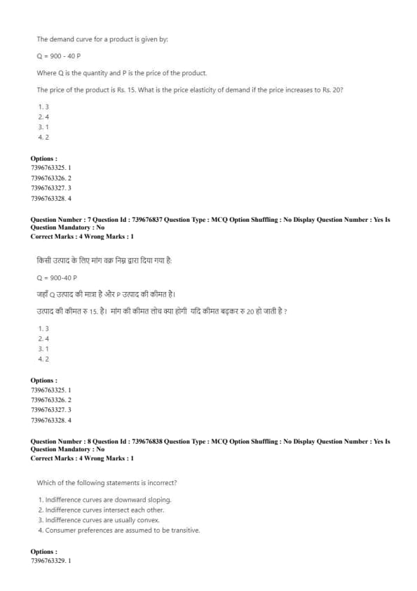 The demand curve for a product is given by: \( Q = 900 - 40P \). Where \( Q \) is the quantity and \( P \) is the price of the product. The price of the product is Rs. 15. What is the price elasticity of demand if the price increases to Rs. 20?