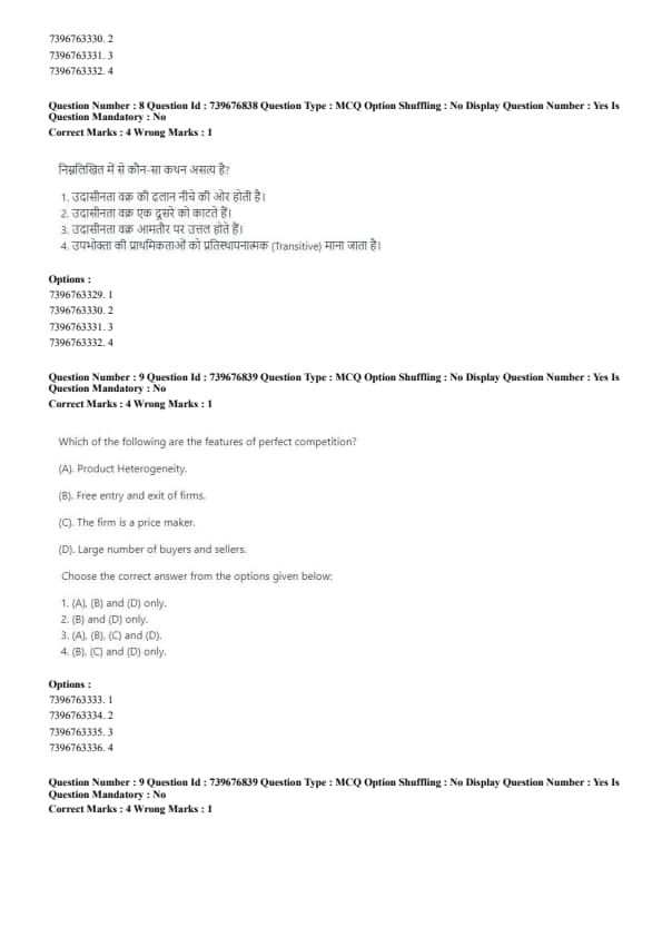 - (D) Large number of buyers and sellers