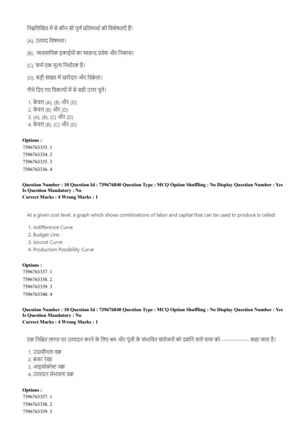 - (4) Production Possibility Curve