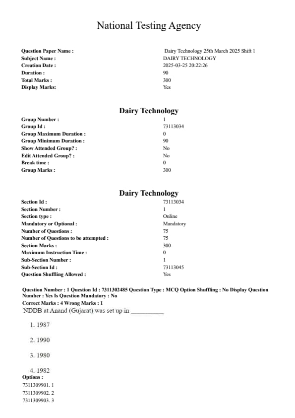 The CUET PG Dairy Technology exam 2025 was held on 25 March 2025. After the exam, students can access the question paper, answer key, and PDF solutions. The exam tests understanding of core areas such as dairy engineering, dairy microbiology, milk processing, quality control, dairy chemistry, packaging, and storage technologies.