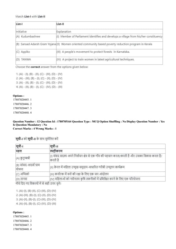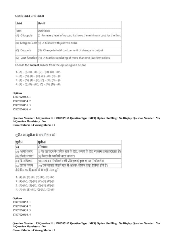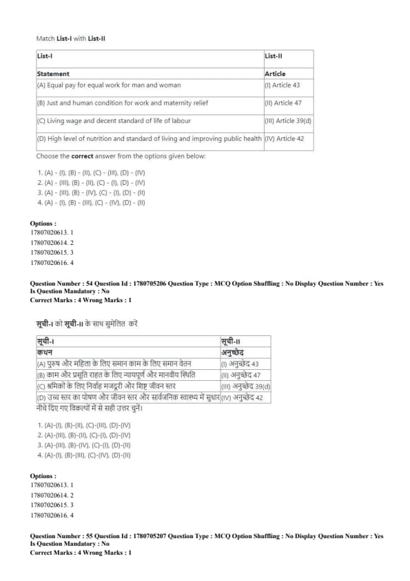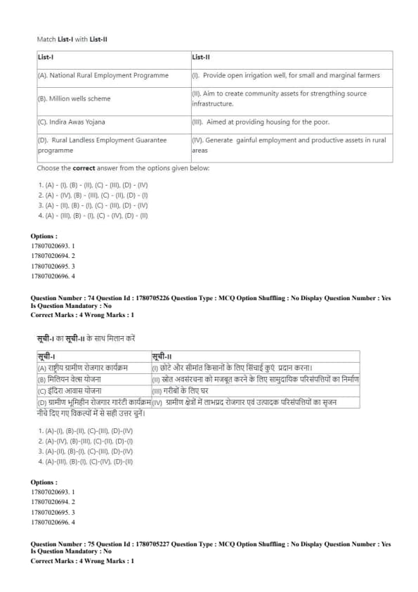 - (B) (A) - (IV), (B) - (III), (C) - (II), (D) - (I)