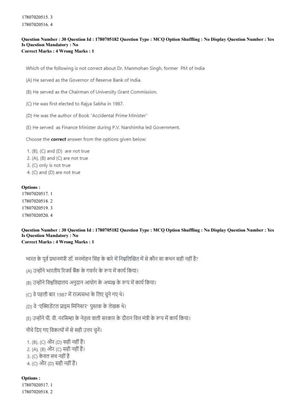 - (B) Manmohan Singh