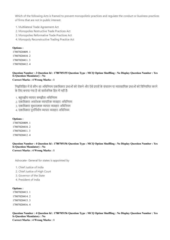 - (B) Monopolies Restructive Trade Practices Act