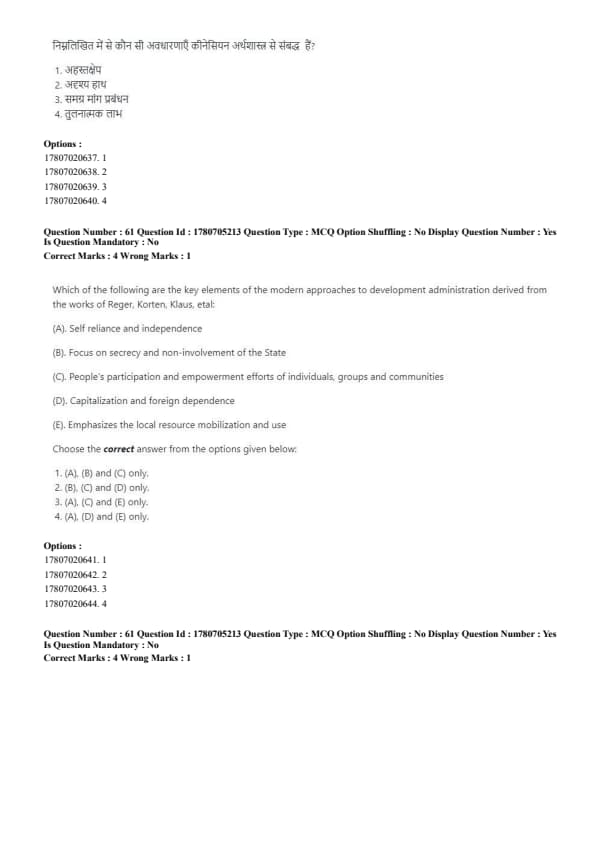 Which of the following are the key elements of the modern approaches to development administration derived from the works of Reger, Korten, Klaus, etal: