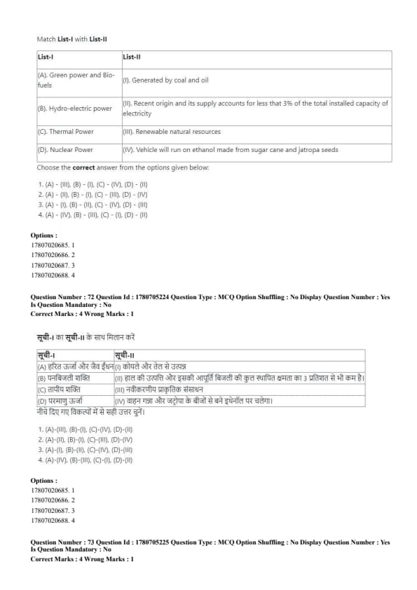- (A) (A) - (IV), (B) - (I), (C) - (II), (D) - (III)