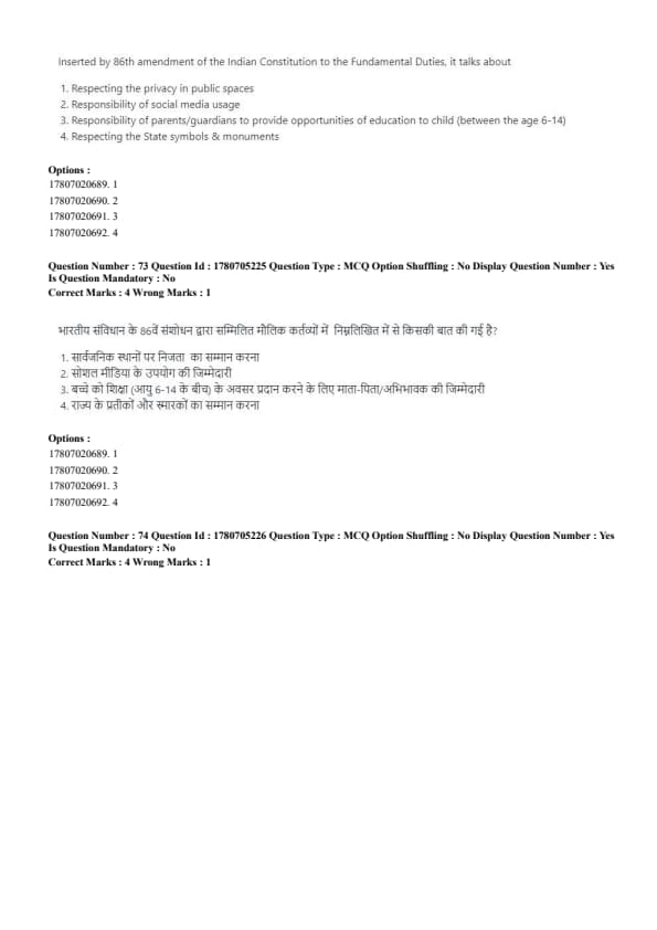 Inserted by 86th amendment of the Indian Constitution to the Fundamental Duties, it talks about