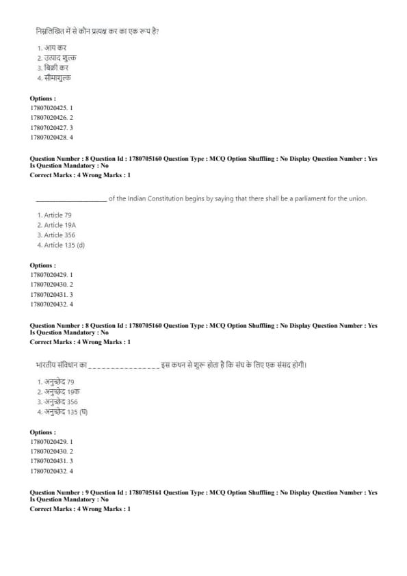 The exam consists of 75 questions to be completed in 60 minutes. Each correct response earns 4 marks, while 1 mark is deducted for every incorrect response.