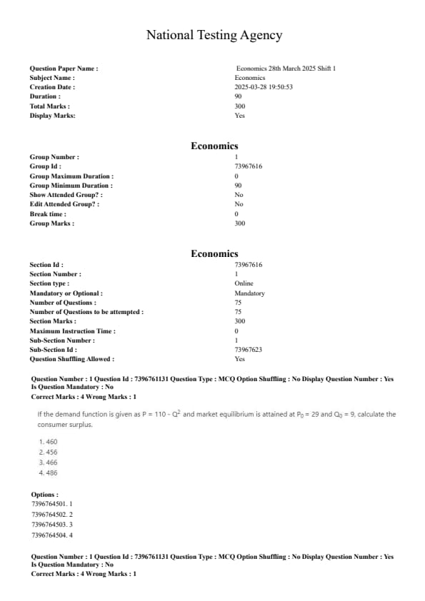 CUET PG 2025 COQP10 - Economics (Eng) 2025 Question Paper with Solutions