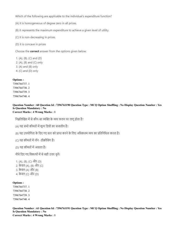Which of the following are applicable to the individual’s expenditure function?