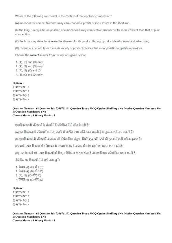 - (D) Consumers benefit from the wide variety of product choices that monopolistic competition provides.