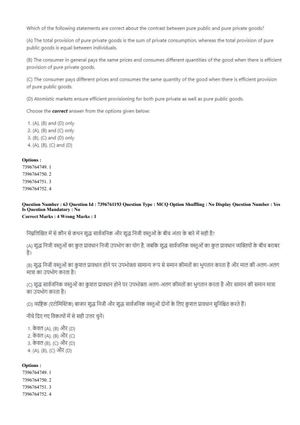 - (D) Atomistic markets ensure efficient provisioning for both pure private as well as pure public goods.