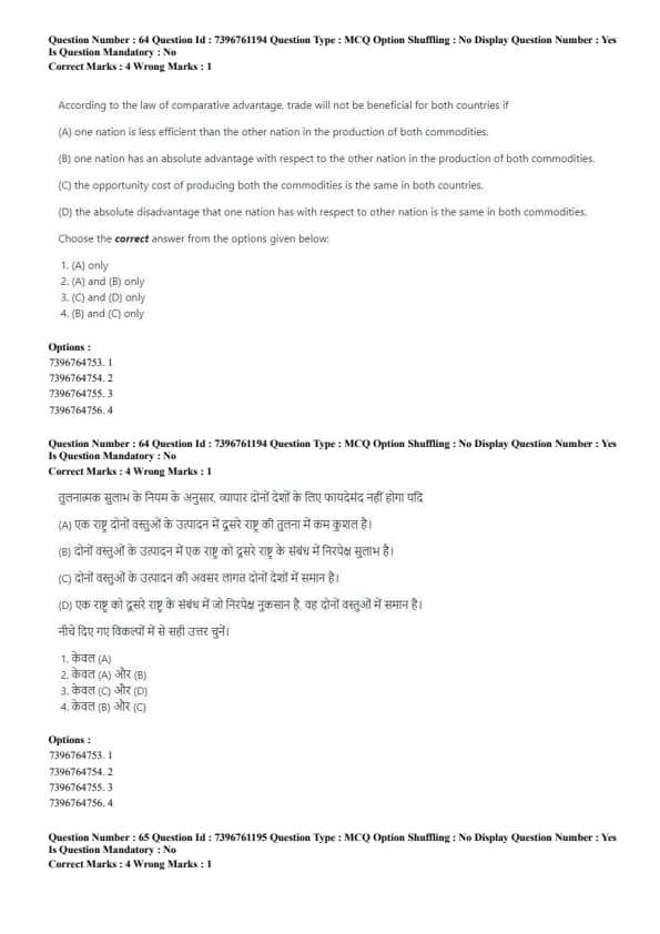 - (C) The opportunity cost of producing both the commodities is the same in both countries.