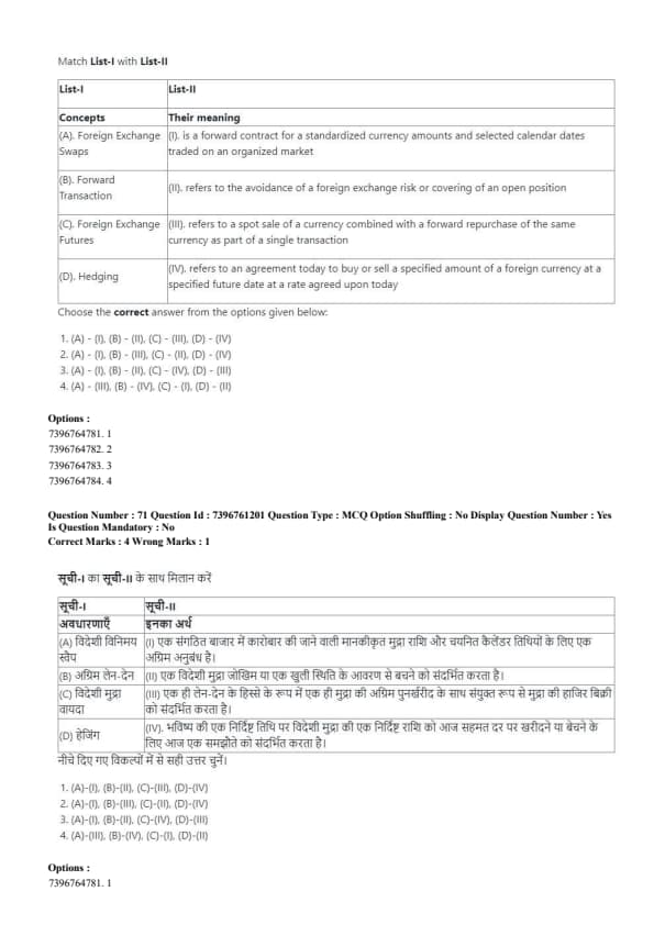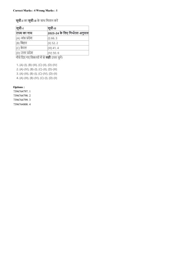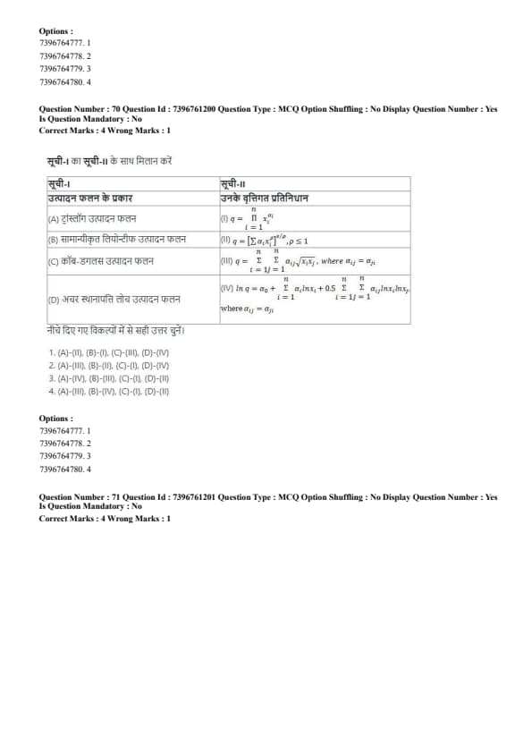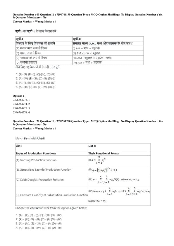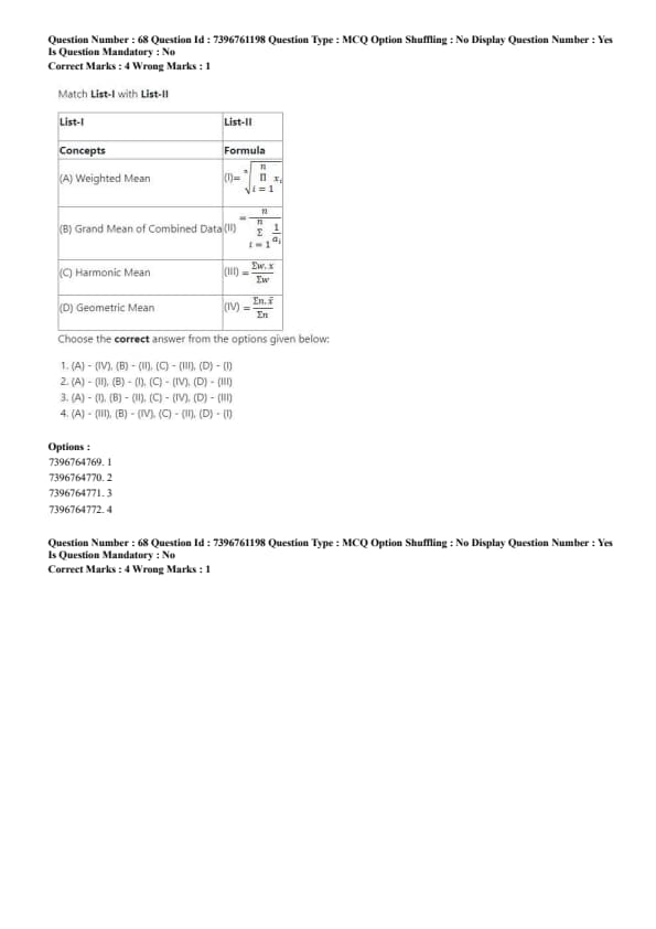- (4) (A) - (IV), (B) - (I), (C) - (III), (D) - (II)