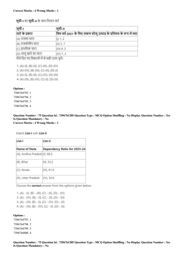 - (2) (A) - (IV), (B) - (III), (C) - (I), (D) - (II)