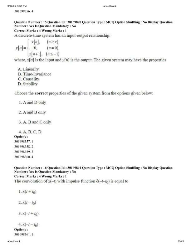 The given system may have the properties: A. Linearity, B. Time-invariance, C. Causality, D. Stability. Choose the correct properties.