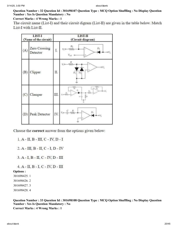 The circuit name (List-I) and their circuit diagram (List-II) are given in the table below. Match List-I with List-II.