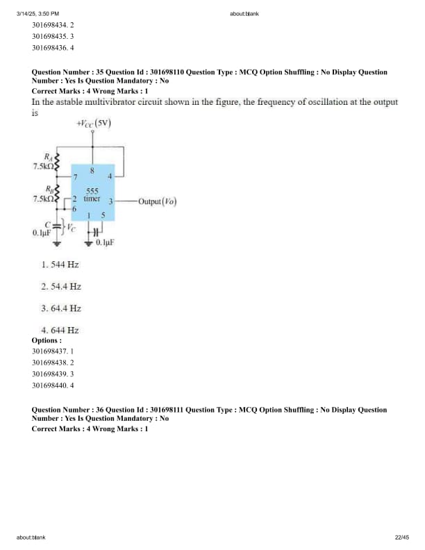 In the astable multivibrator circuit shown in the figure, the frequency of oscillation at the output is