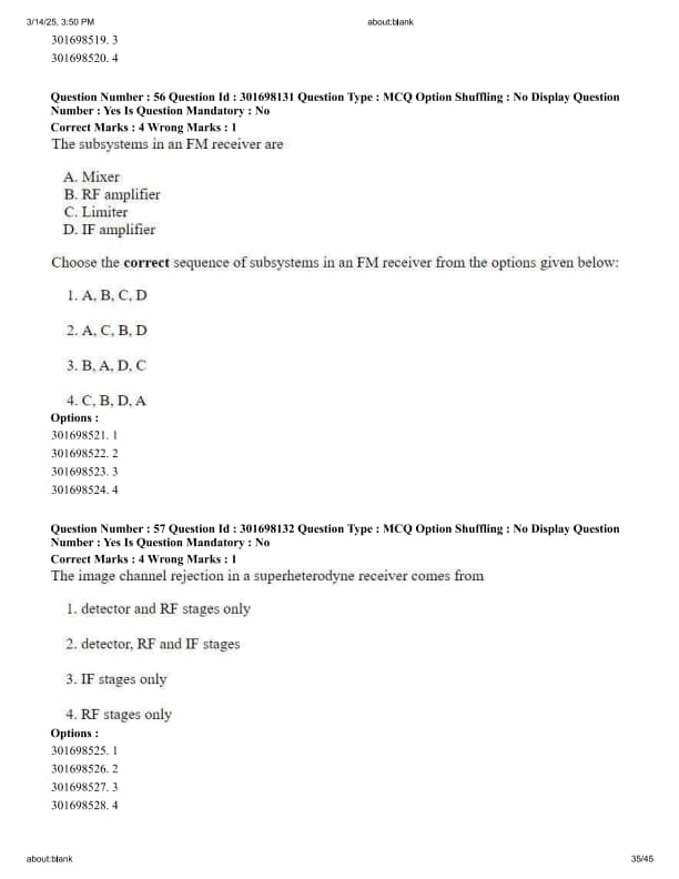 Choose the correct sequence of subsystems in an FM receiver from the options given below:
