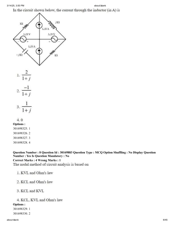 In the circuit shown below, the current through the inductor (in A) is