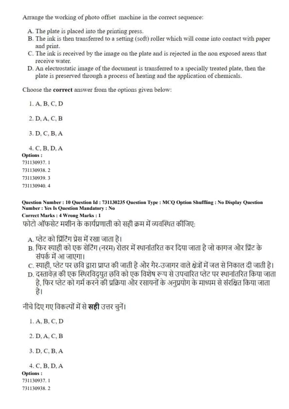 B. The ink is then transferred to a setting (soft) roller which will come into contact with paper and print.